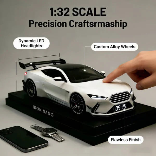 - Egy széles karosszériás sportkocsi lenyűgöző replikája az éjjeliszekrényedre. Ez több mint egy egyszerű ébresztőóra; ez egy igazán mutatós darab.