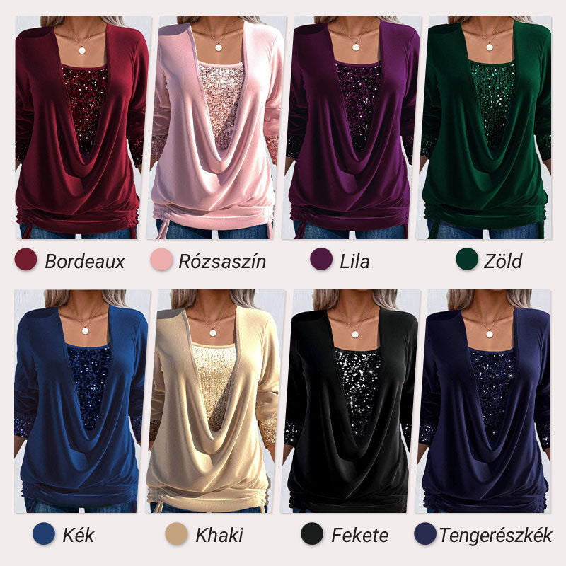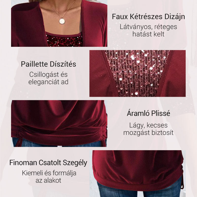 Kétrészes flitteres felső, laza szabású és megkötős.